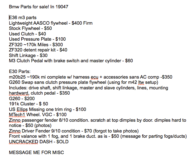 AAsco sold, as is pressure plate and e36 shift boot, fenders sold,Originally posted by Lof84 doors allow you to transport more whores.
