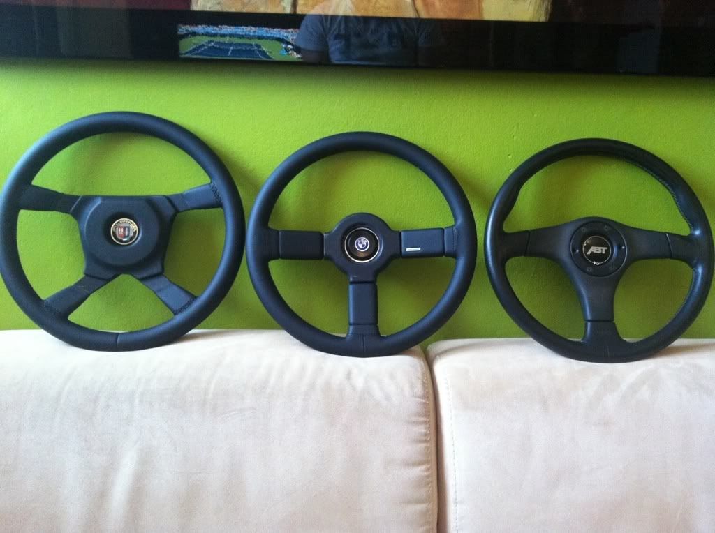 The wheel is in decent shape, some fading to the rubber cover but overall its excellent and very nice looking in an e30.