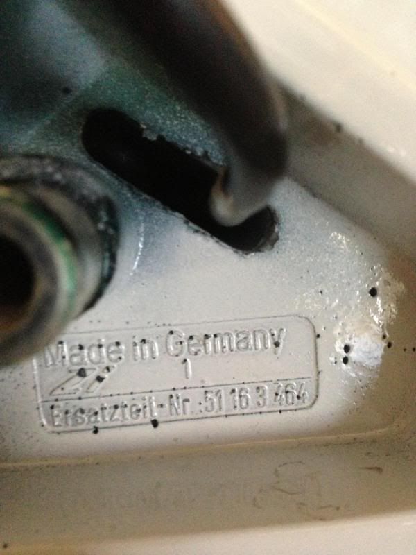 So the E34 mirror on an E34 has just the large bolt holding it in, but when you stick it in an E30, the top E30 bolt lines up pretty well. I drilled a hole in the E30 door to use the main E34 mount as well as the E30 top mount.