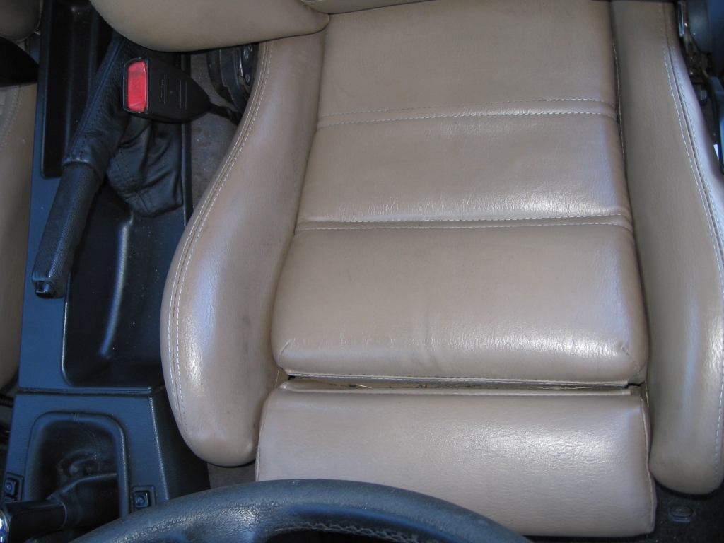 These seats were purchased in the steal of a lifetime from a local BMW boneyard, approx. 2 years ago. At that time they had minor dirt/grime on them and were immediately cleaned accordingly. They have since then been given periodic leather treatment and care. They have been in my daily driver 325is since date of purchase and have only seen minor useage in the two years I've owned them. The bolsters are still VERY strong and have MANY more years of life left on them.
