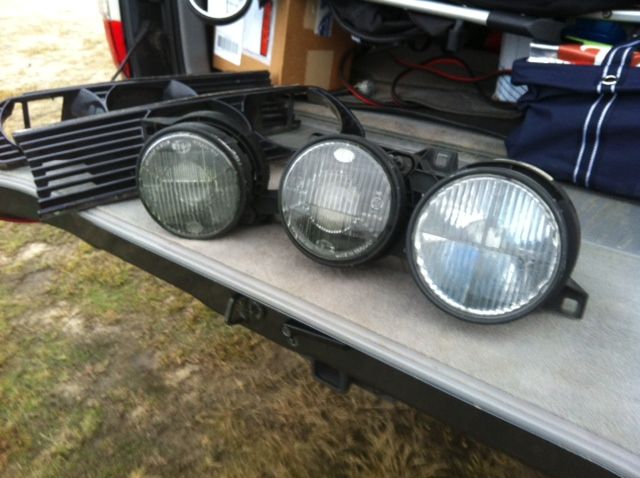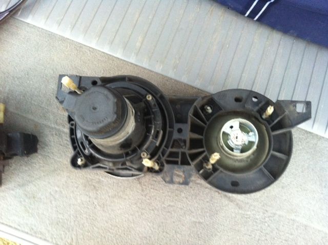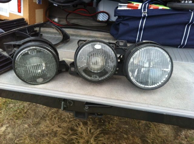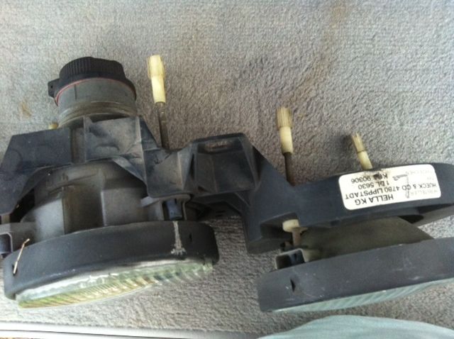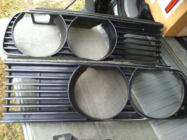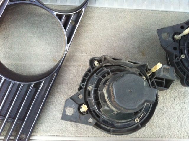 My M3 came with the 'high beam delete' option, since I don't track the car I wanted my high beam back, so I bought a new set of smilies. This is the (partial) set that came off my car. The PO took a dremel to the driver side light assembly, as you can see. I'll also throw in the grills that came with my new euro set, since I don't need them. $100+shipping