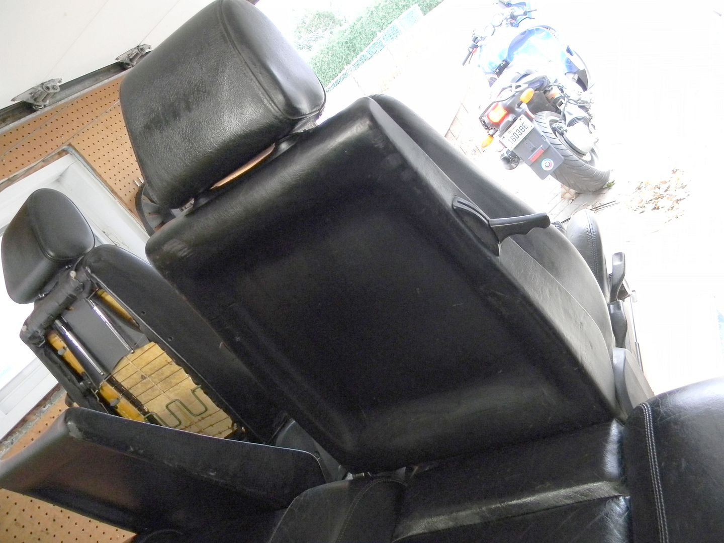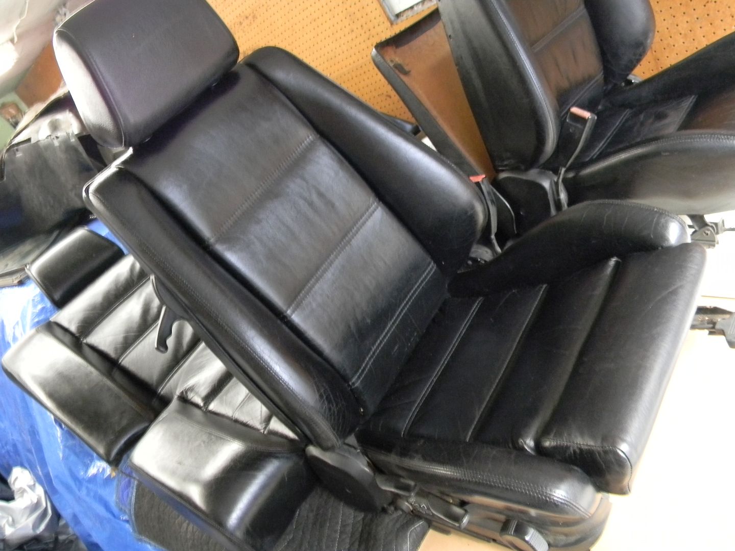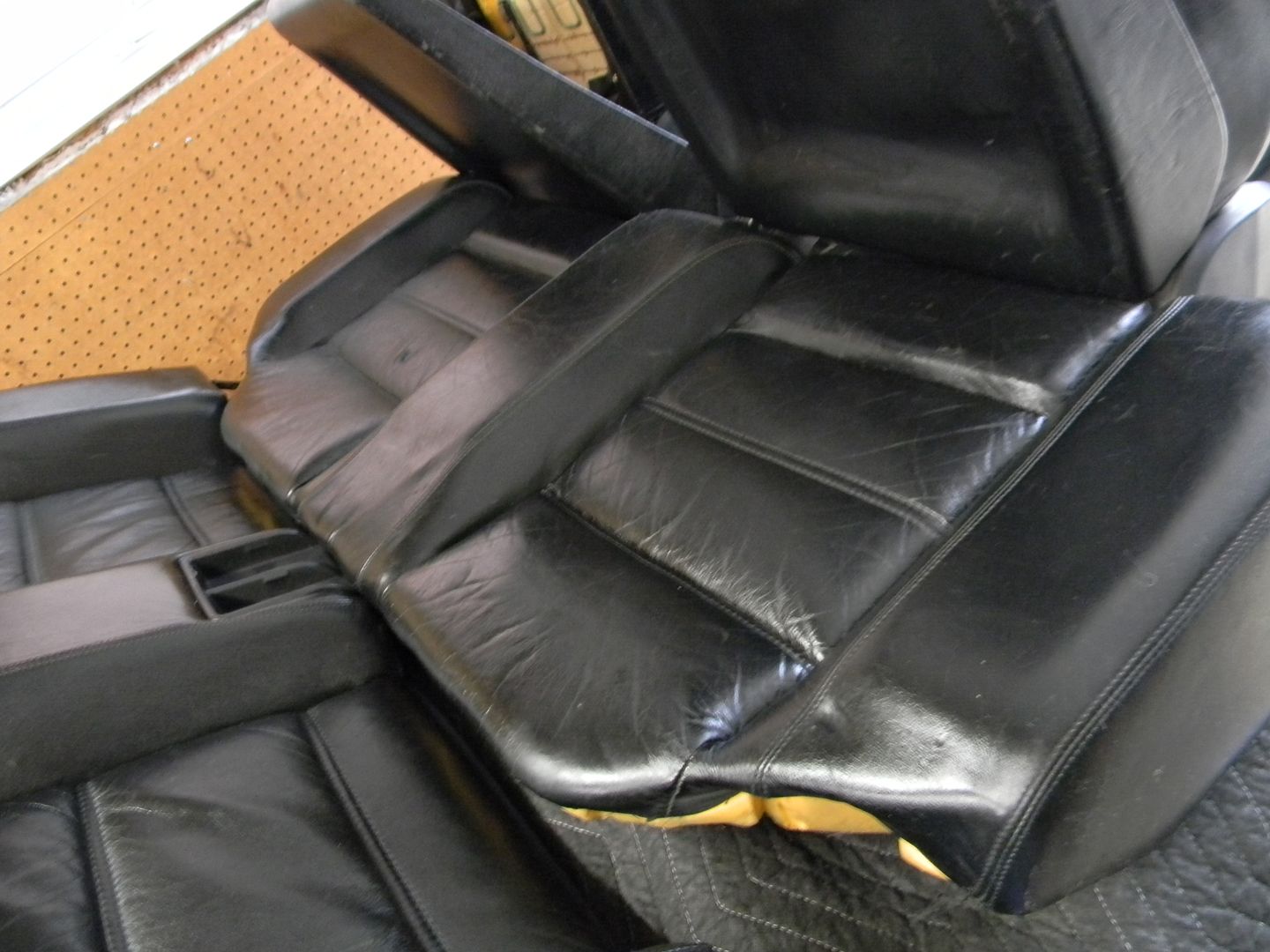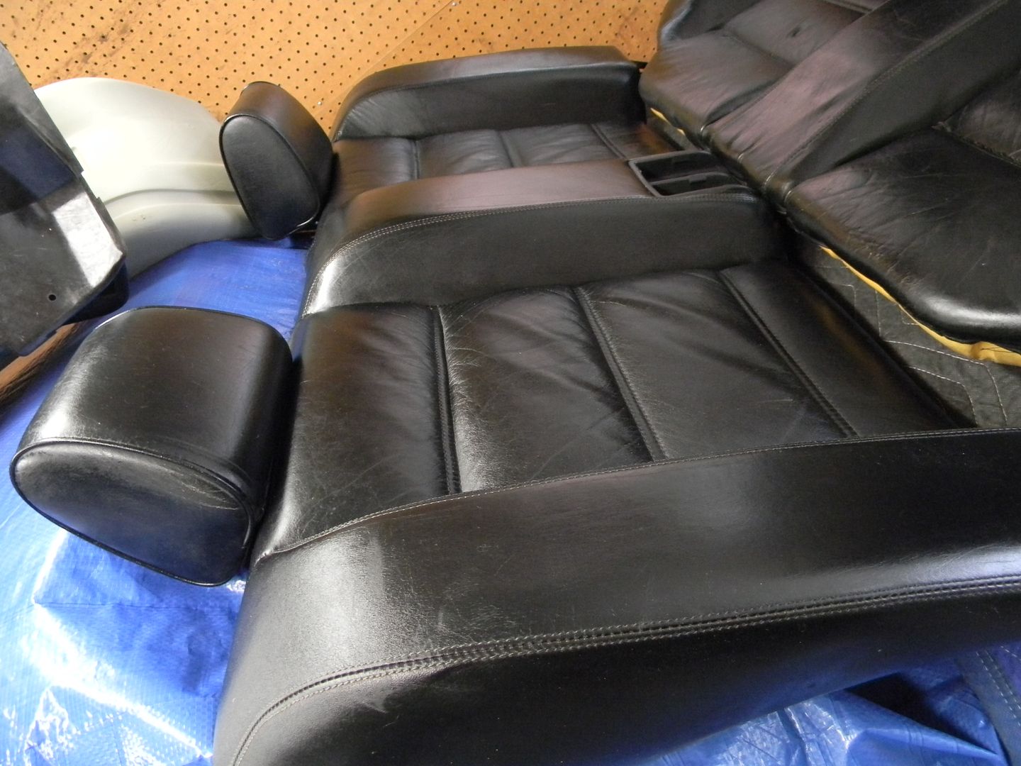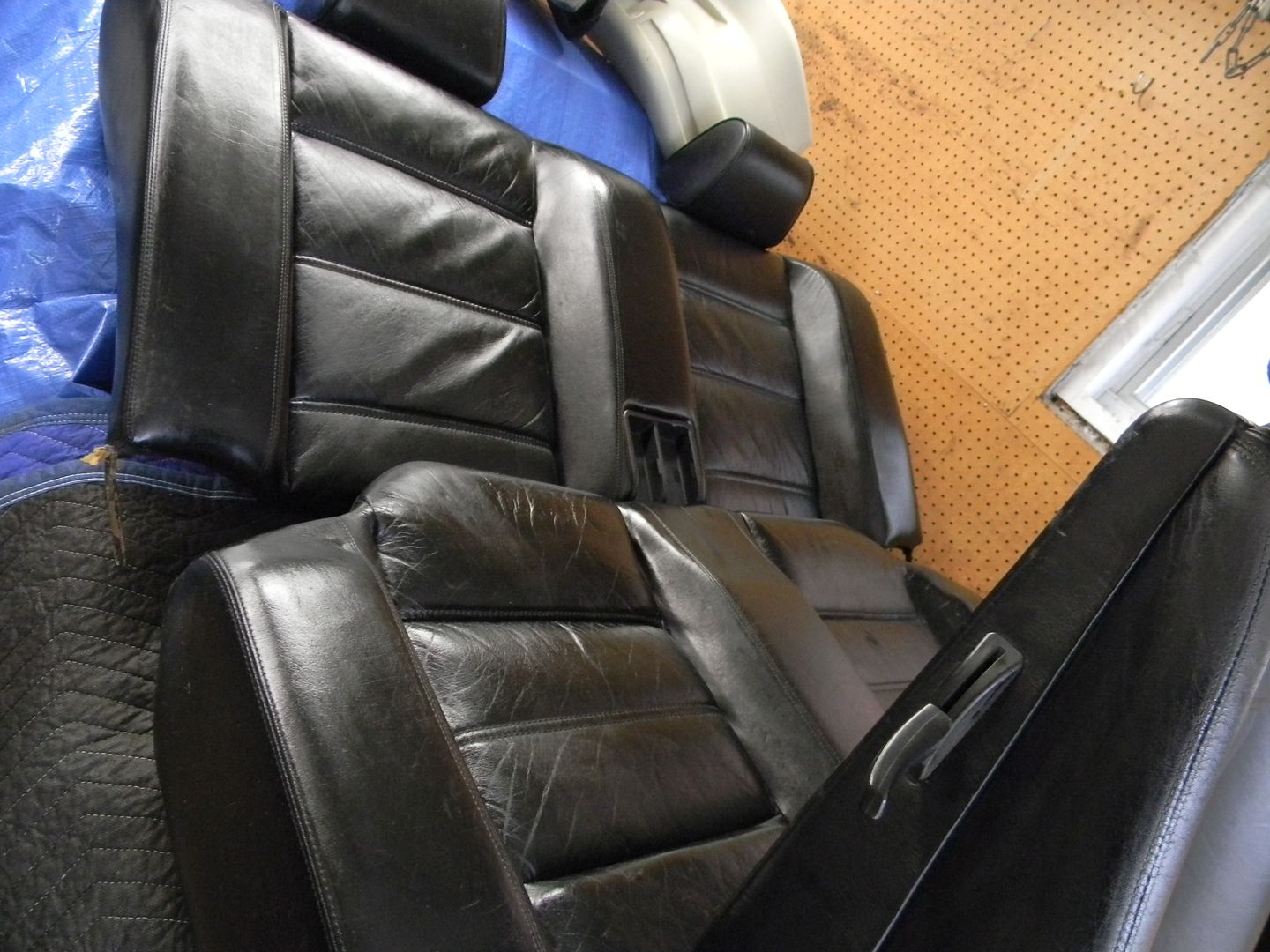 Good condition. No rip. No crack. But not perfect. Two 1" stitches on the top of the rear backseat have given up. Easy fix. Come with headrests. The back cardboard panels of the front seats are marked from getting hit by rims, tires and tool boxes.