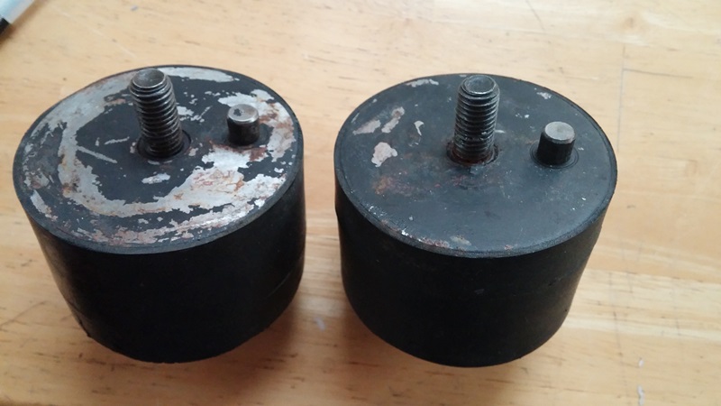 5. Genuine BMW E28 M5 green motor mounts with 1 stud shortened by 10mm but otherwise unused SOLD