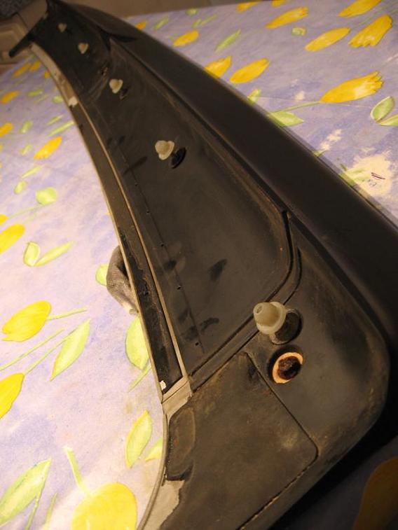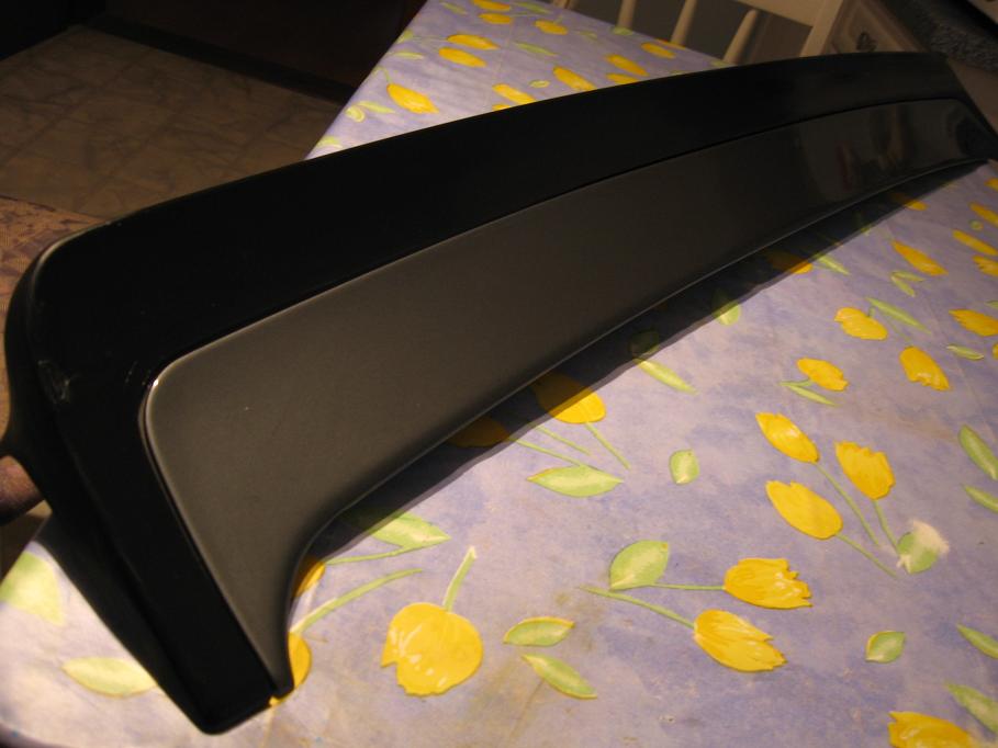 M tech I wing/spoiler what ever you feel like calling it. I think the color is delphin, but not sure. Its a dark silver color. the rubber on it is in very good condition. not flaking at all and very little fading. I put some rubber treatment on it to clean off the dust, thats what the streaks are in the pics. all the mounting points are just fine. the paint has a couple of little scratches in it, most, if not all will buff out with a little wax. The only problem with it is the corner has a little rip in it that was glued back. it is really small, maybe 1/2 inch, wasnt ripped all the way off, just a gouge kinda. check out the pics.