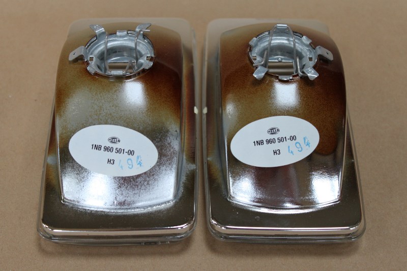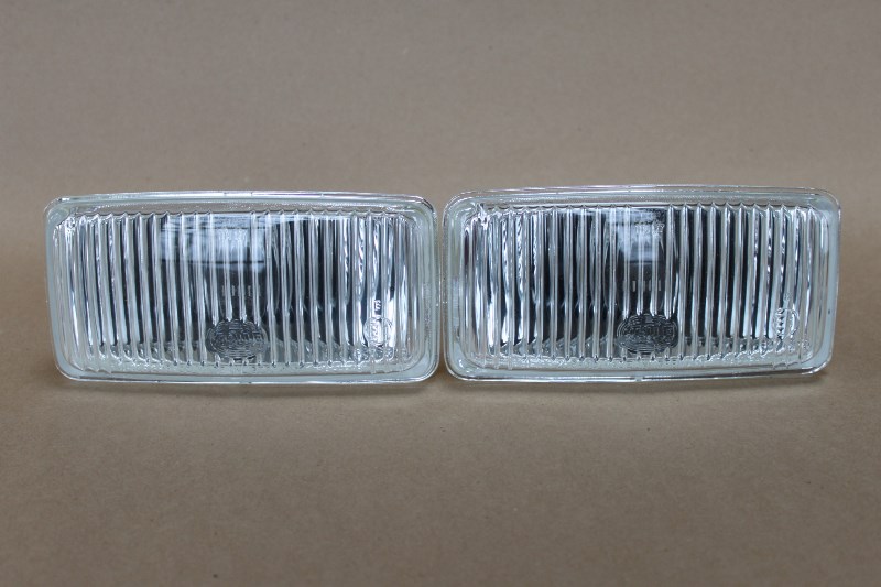A pair of NEW fog light lenses for the 1986 325ES or 1987 325IS with the "cow catcher" lower valence air dam. These are new Hella lenses.