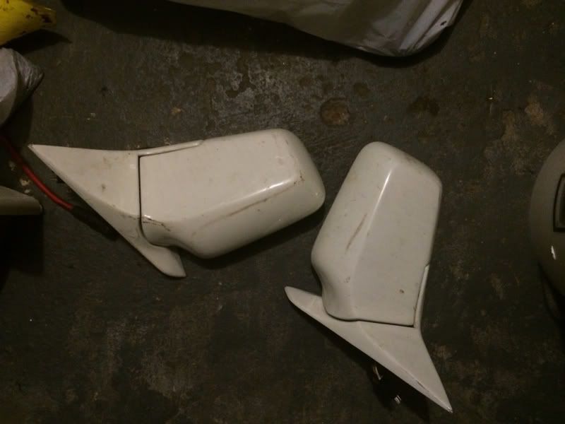 Alpine white mirrors. Cleaned up well, just been in my basement for a long time and touched with my greasy hands. They don't have actual mirror reflective faces on them. $35 shipped.