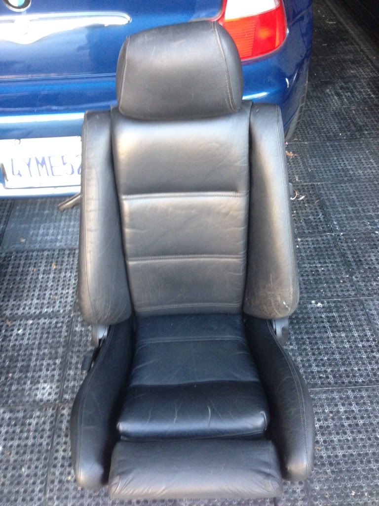 The leather pieces are from vert seats and the seat frame is from a coupe. Though it's not an actual M3 seat, the vert seat leather is identical to M3 leather, and the coupe seat frame is the same as the M3 seat frame (same part number)