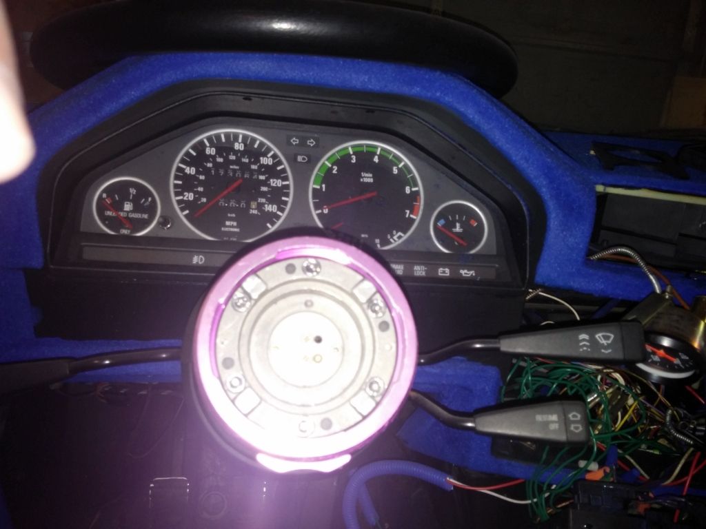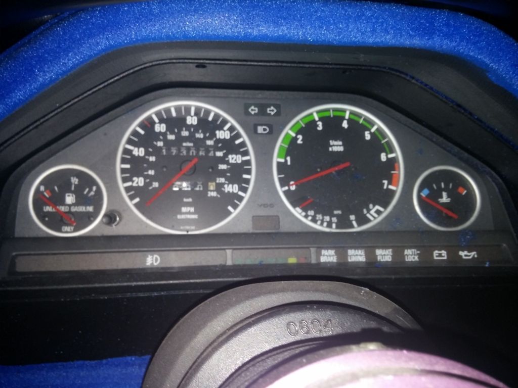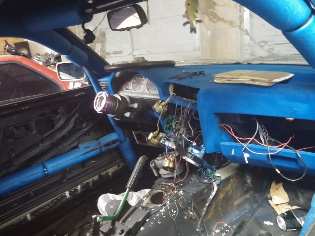 Silver track car gauge cluster, this car also has a nardi hub with detachable wheel