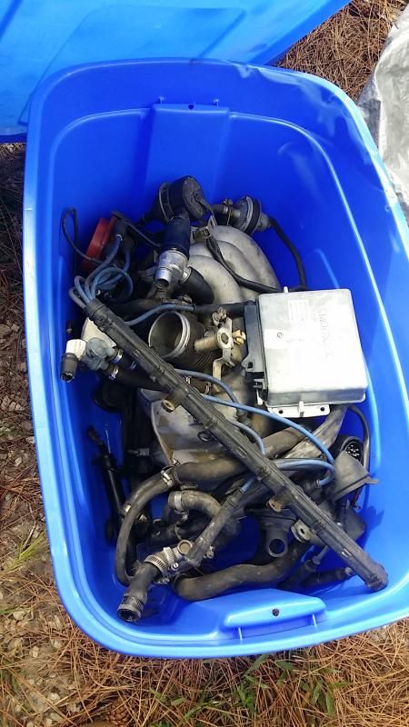 In one container is the intake manifold with the wiring harness and injectors still attached. I pulled it apart this way for ease of putting it back together.