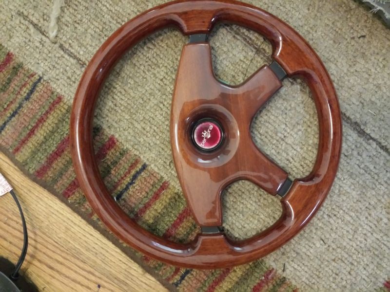 Next is a nice wood IFRA italian steering wheel with a personal horn button. It is same pattern as NARDI which I believe also fits NRG hubs. It is in great shape. The center is removable and will also look good as just a black and wood wheel. I don't know if IFRA makes wheels anymore or what exactly it is worth. It italian. Its real wood. Its very high quality. I would like $100.