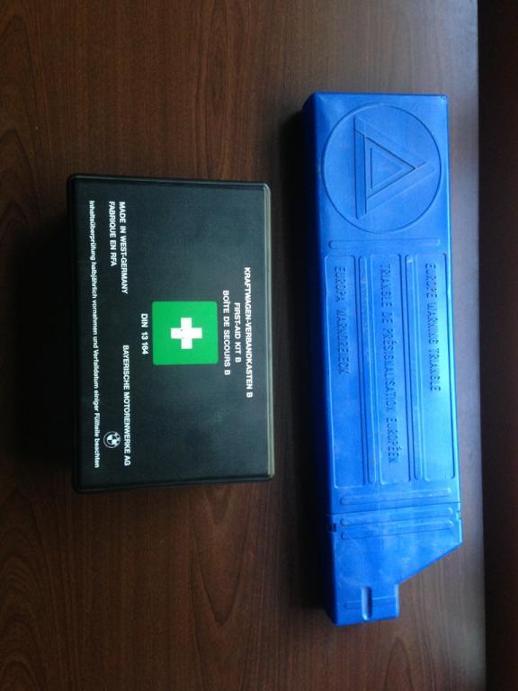 AS the title says, Ive got an OEM BMW warning Triangle in the blue case. As far as i can tell, it either hasn't been used or has ben used very lightly, maybe the triangle once or twice MAYBE. Box has some dings here and there, but the triangle itself is all folded up nice and pretty. Has some dust on it, but looks to be in very nice shape, maybe used once if at all.