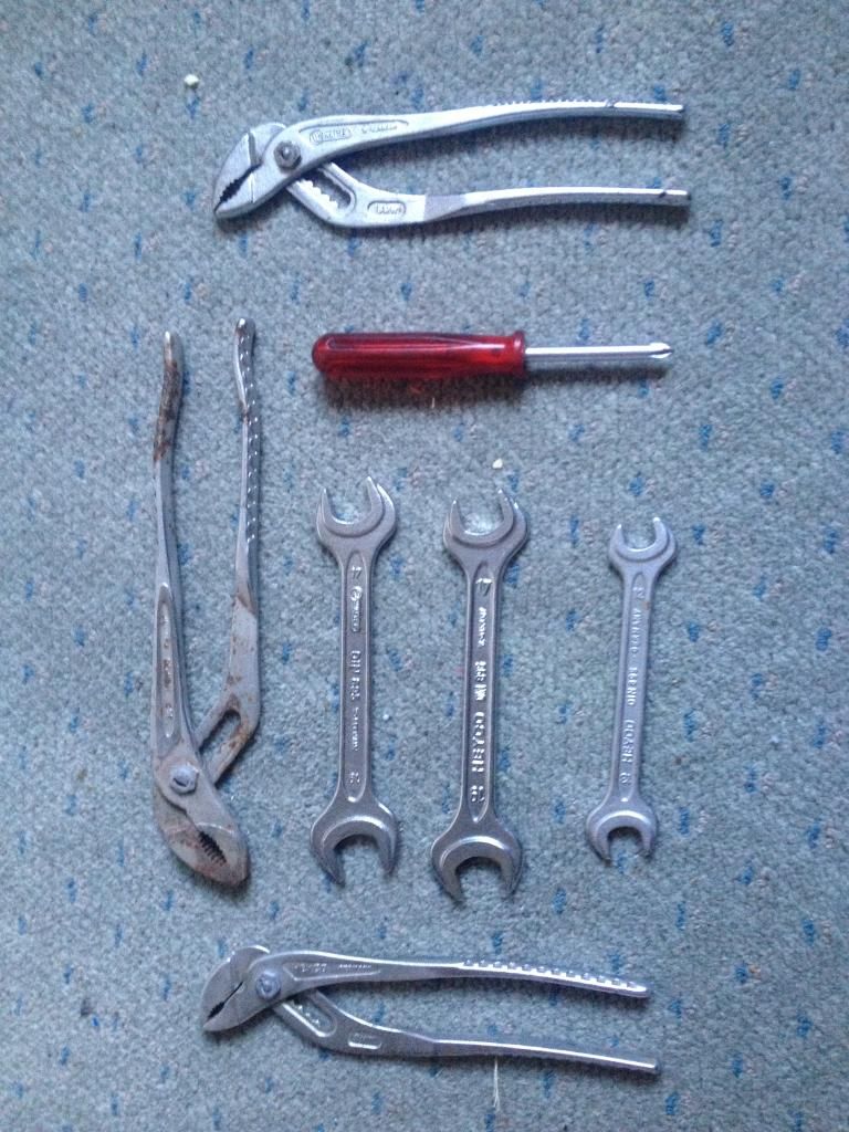 I'll take the screwdriver and large pliers if you'll split it up and the above doesn't work out.