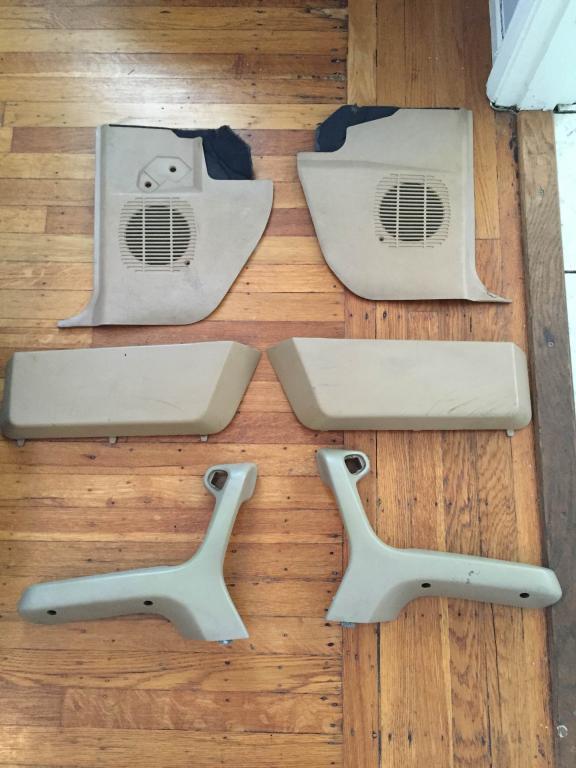 Driver and passenger front seats, rear top and bottom, 2 front speaker covers, 2 door cards, 2 rear inserts, 2 door pockets, and 2 handles.