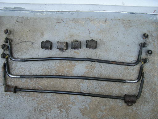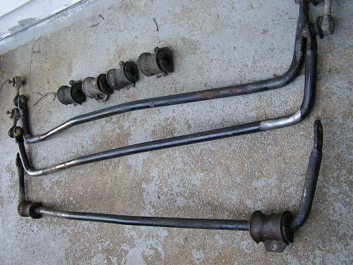 i have 2 cabrio front sway bars for sale,comes with the brackets, rubber bushings and end links-i would advise to replace the bushings and endlinks before install....(on the pics)the 2 sway bars are the one's w/o the rubber bushings attached-the one with the bushing is off my e30 m3(for comparison,not for sale)-these sway bars are a bit larger and will bolt up to any e30(318,325i,is),also enclosed a pic to compare the sizes to the m3(bigger one is from the cabrio)...anyway,asking $45 plus s/h for each. i take paypal...thanks