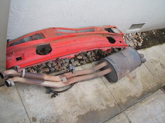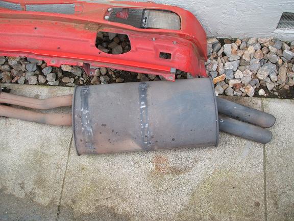 E30 325 ic - Rear Muffler Section - From cat back . Flanges are intact and seal well. Some superficial rust. One small rust spot that has the beginnings of a small hole. No change in sound though. Can cut into pieces and ship all or part if needed. Comes with rear exhaust hangers (pair) - may sell hangers seperately for right price.