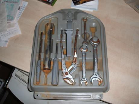With plastic retainer - all tools there except for socket adapter -upper right side