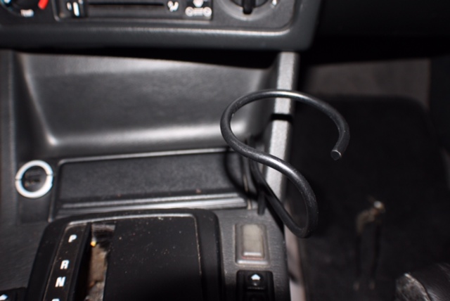 Has a small bend to stay out of the way in 5th gear as much as possible.