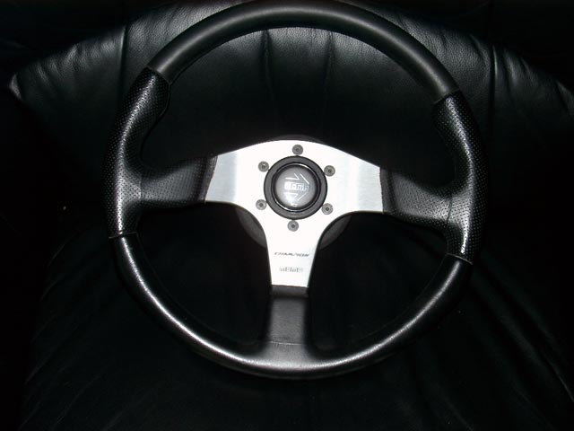 It's a 350mm, and it was awesome to drive with. It is very light, and the grips are a nice thing to have while tackling a twisty bit of road.