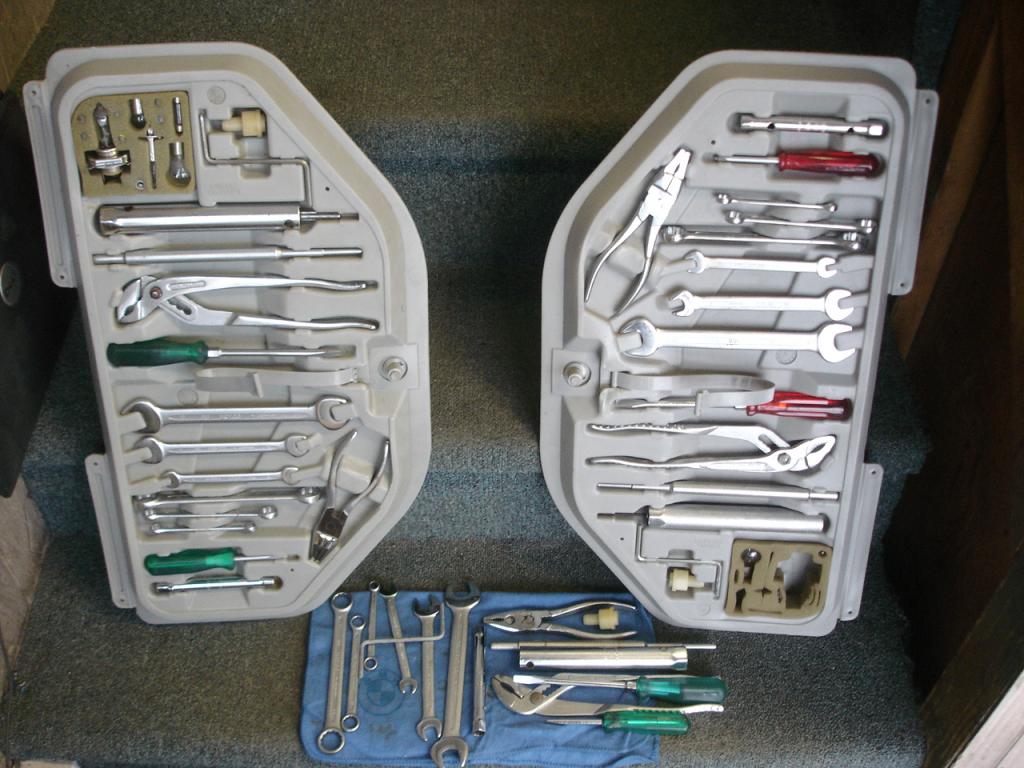 1 kit with green handled screwdrivers in still great shape with a bit more specks of rust than the kit in the tray. No tray, but has a genuine BMW blue rag. $225 shipped