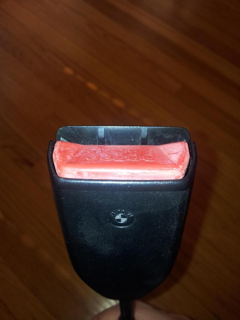 Passenger side seat belt receiver in good condition, light fading on the red press button, 100% operational.