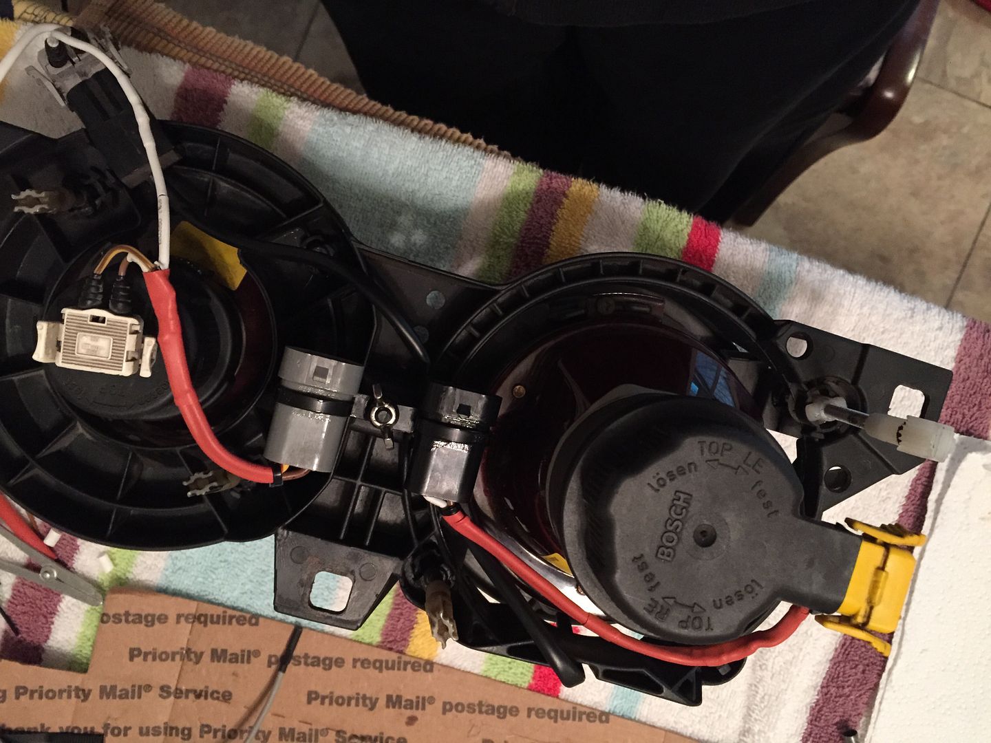This is the mess of stuff i'm starting with. I prefer Bosch so that's what i'm using but it's the same as hella. I also have an aftermarket set of crosshairs i'll be doing too.