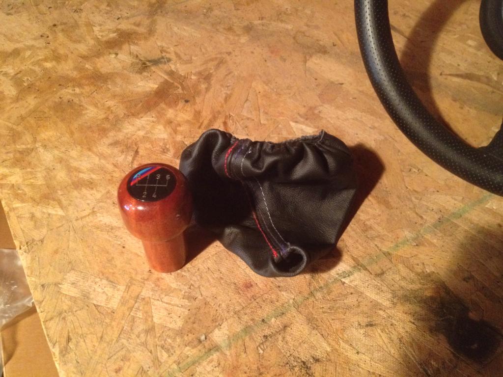 Wooden Shift knob w/M-Stripe 5-sp pattern and nice leather M-tricolor shift boot. Barely used, was 150 new. - $110