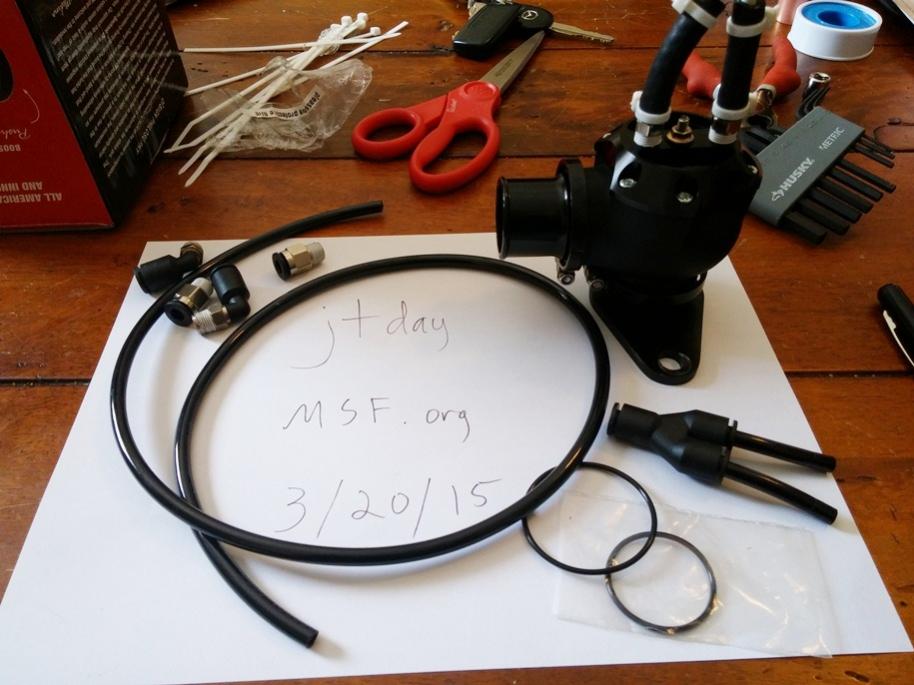 Less than 20 miles on this. Includes all the fittings and hardline that it originally came with. You will need to buy your own flange as this one has a mazda/subaru flange. As you can see, I dont trust the push connects so I just made my own lines with barbed fittings and some hose. This valve does not cooperate very well in VTA mode with the GA so I'm getting rid of it. Works fantastically in Full Recirc. Must embrace my inner rice.