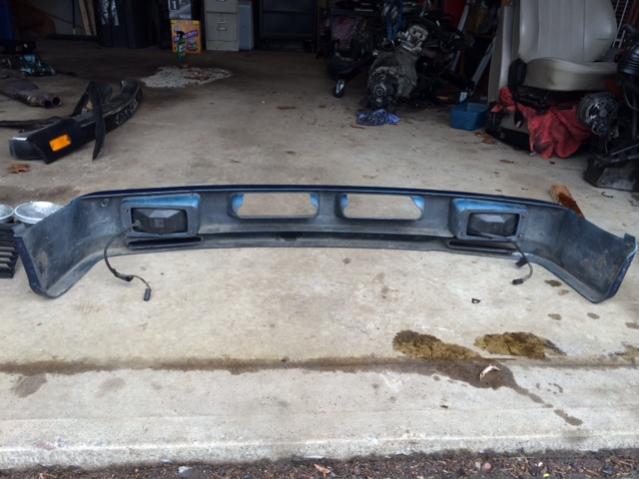 I have a lapis blue front air dam from an '84 e for sale. It is in good overall condition, just the usual rock chips. It has a small crack on the driver side back edge (as shown in pics) that had been sort of fixed with a hidden zip tie and paint job, not really noticeable.