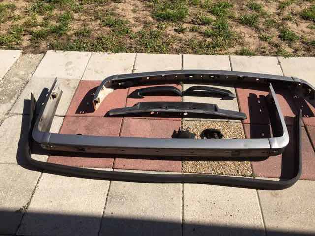 I have a full set of euro bumpers with the trims. I got these with an Mtec kit and I already have a set. The Bumpers have been painted what looks like dolphin grey and have the usual rust on the inside so as with all these bumpers you will need to refurbish them . The trims are clean and there no cracks. The rear bumpers have the brackets. The rear trim clips you will need to buy since I had to remove them to get the rear Mtec apron off. SOLD