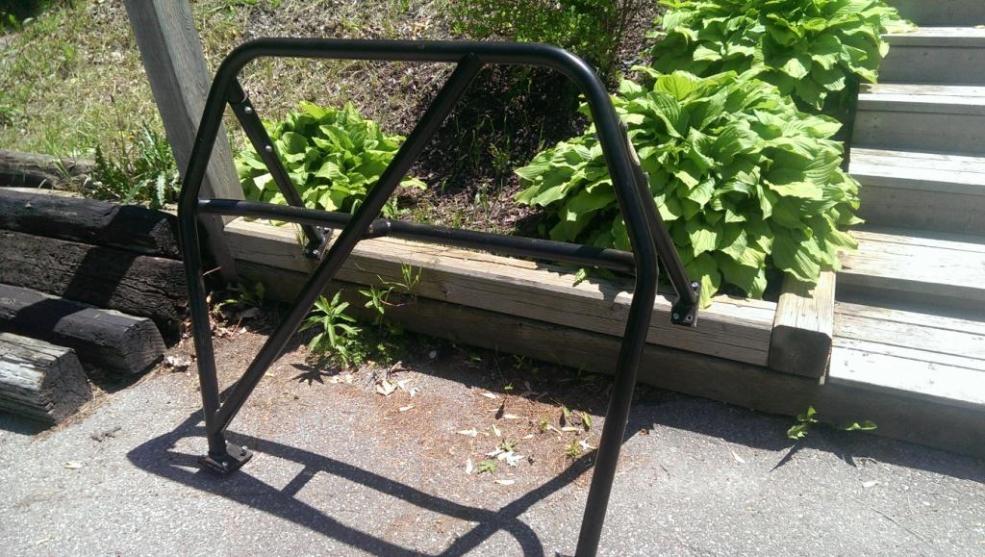 The Kirk four-point competition bar includes the main loop with a diagonal and horizontal brace (which can be permanent or removable) and two rear braces.