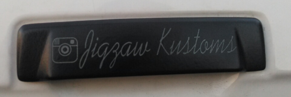 The handles are sand blasted and then lasered with anything you want .. Shop name .. Instagram name ... Girs name .. Wife 's name.. Mistress... you name it I can lasered it ...