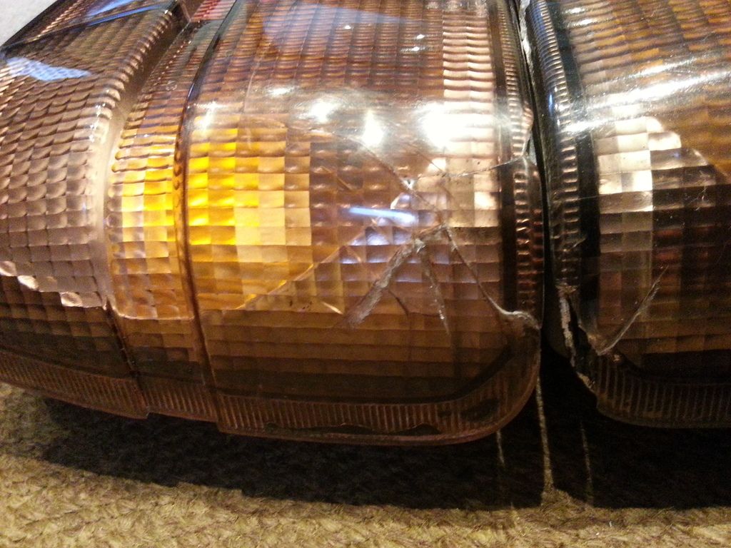 Lenses are good, but as you can see from the pics below, one has a crack on the bottom, and the other has a corner piece missing.