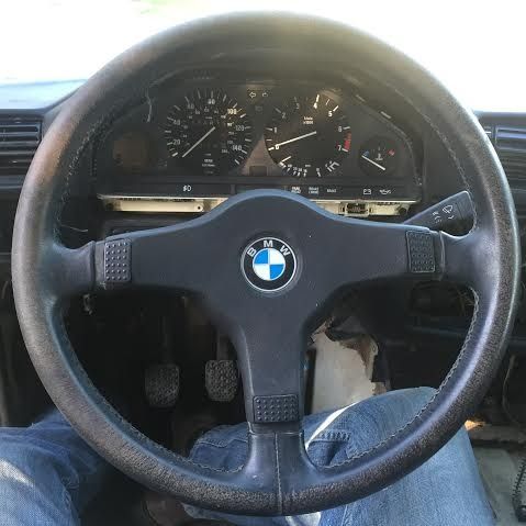 So first the wheel, Its on the car I just bought.. has one bigblemish which is the leather coming unstitched at the ten o clock position. Id Like $80 plus shipping OR Il trade for an e30 momo adapter!