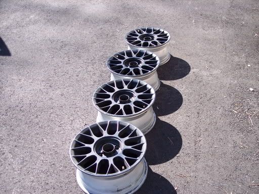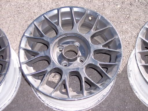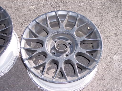 These are wheels licesned by BBS. Offset is either 35 or 38, they havent been on my car for quite some time and I can't remember. They do, however, require the use of a 10mm spacer and longer lug studs. Both of which are included in the sale. These have been sprayed black and have a few stone chips, but still roll straight as an arrow and have ZERO curb rash. They are being sold without tires. IIRC, these wheels are no longer available. *I also have center caps for these, but never used them.