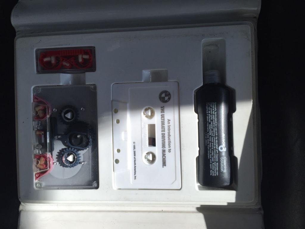 I've got this original BMW owners manual/service manual and original radio cassette cleaner and security code for the original radio along with the 'introduction to the ultimate driving machine' cassette. I've never got it to play, not sure if it's something with the radio or what. Still pretty cool. No idea what it's worth - $150 for the radio + tape case/manual?