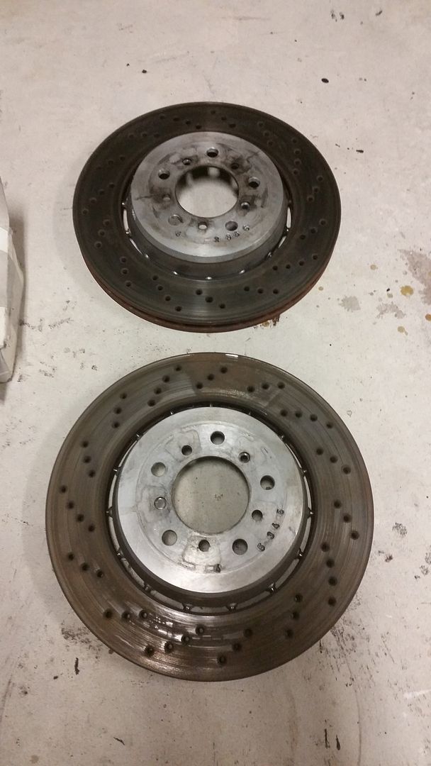As title, selling a set of E46 M3 Competition brake rotors. Used but in good condition, without any cracks, and above spec. Minimum thickness is 26.4mm, these are both at 27.79mm. (I believe theyre 28.1mm or 28.4mm new)