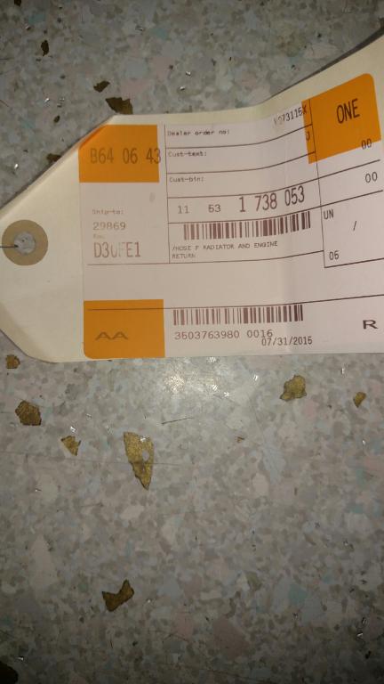 Ordered the wrong seal and didn't realize it until I pulled it out of the bag. This is literally brand new from the dealer. Part #51361888326 . The cheapest I've seen is $72 plus $10 in shipping, so $70 shipped obo it is, or I'll trade for black floor mats as long as they're in good condition Also have a 4 way coolant hose for an S50, part #11531738053 that is under the intake manifold. I think it fits m50 and m52/s52s also, but that for you to confirm. Brand new oem from dealership, never even test installed. I ended up moving my coolant reservoir to the passenger side, so I don't need this. I paid $63 so I'm asking $55 shipped obo.