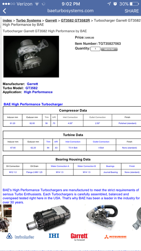 Its a BAE turbo .70 a/r. Its on their website i tried to host a screenshot via my phone idk of itll come out right. I can pm you the link. Its brand new.