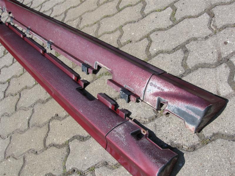here is a set of calypso rot IS skirts. they need paint. 95% of the mounting hardware is included, the only thing you will need to buy is the green inserts that push into your rocker panel holes. yes, you need to drill them. these are original BMW skirts. the one smaller front piece has the mounting part ripped- but it will still mount perfectly without it. check out the pics.