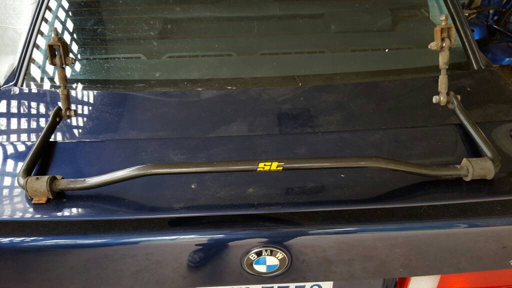 Sold. This is a 19mm rear ST sway bar with adjustable endlinks and rubber mount bushings. The endlinks are nice & tight and the rubber mount bushings are good. You can mount this with stock brackets (includes only one) but is highly recommended that you upgrade with aftermarket reinforced ones. $110 plus actual shipping.