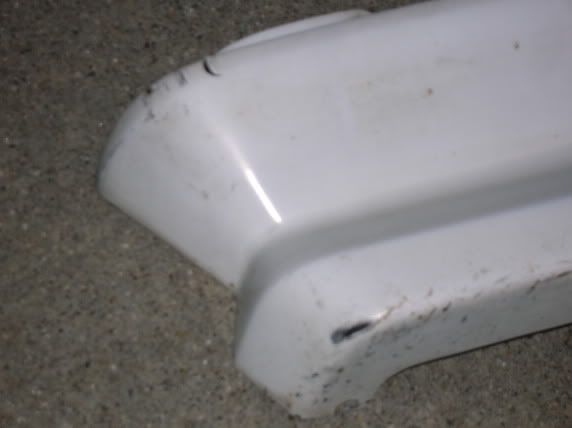 ok, now, i mentioned some wear and tear, as you can tell from the wideshot, its not so bad. but here's the tight shots of the chips, and the cutout for the second tailpipe