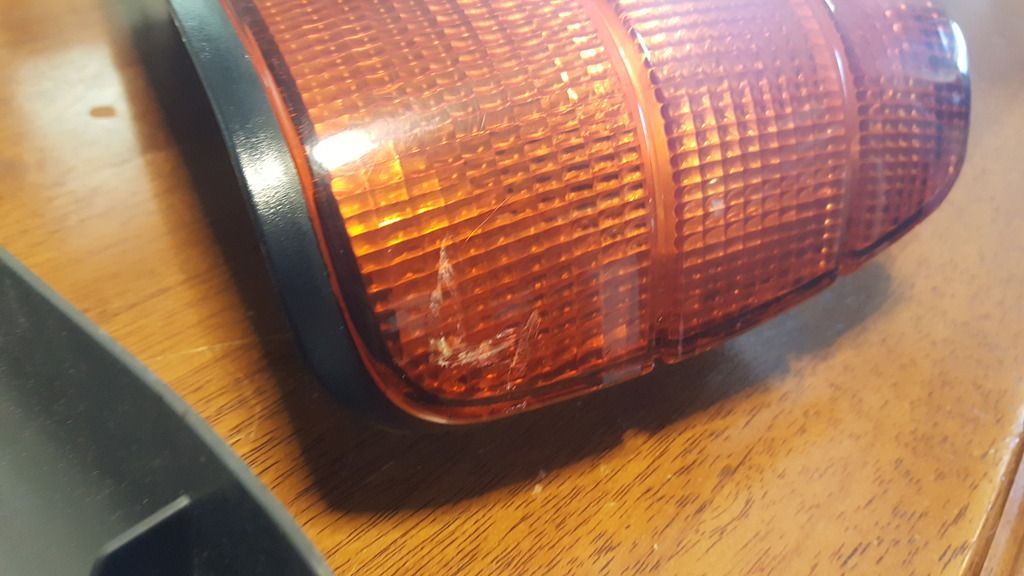 The lens has a couple of scratches/scuffs, but nothing major. I have not tried to clean the scuff in the orange section, but it should look a lot better after a little bit of compounding.