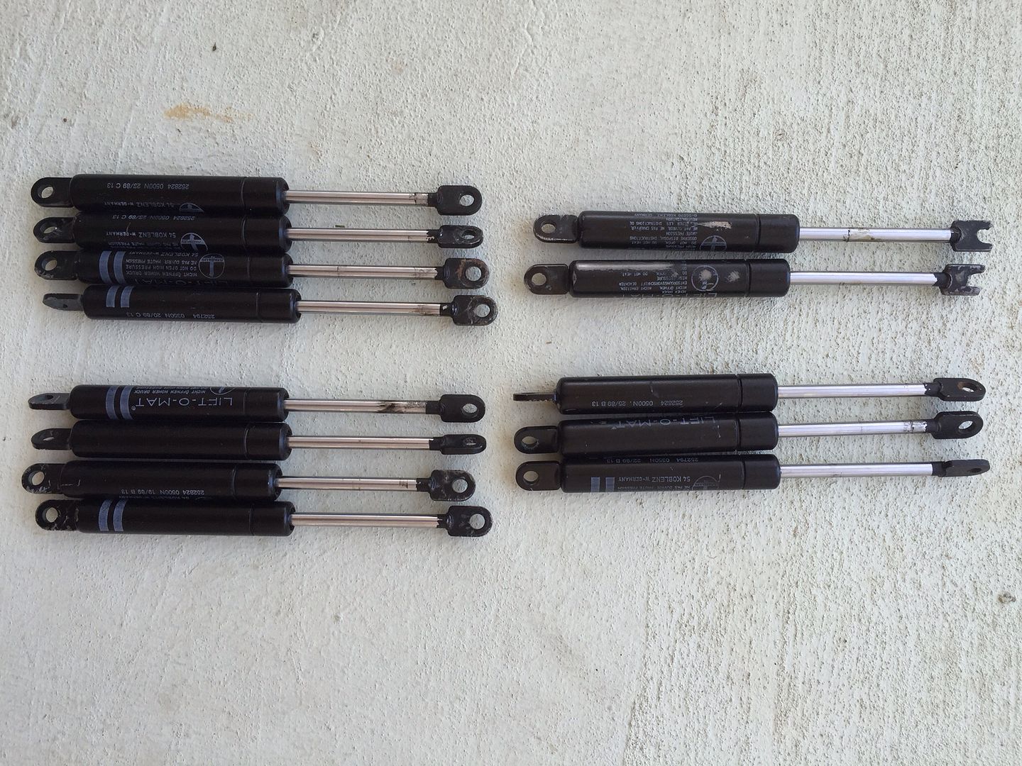 The 2 sets of 4 on the left are for sport seats so include 2 350Ns and 2 500Ns. The 500s I cannot compress with my meager weight. The 350s will with some effort.