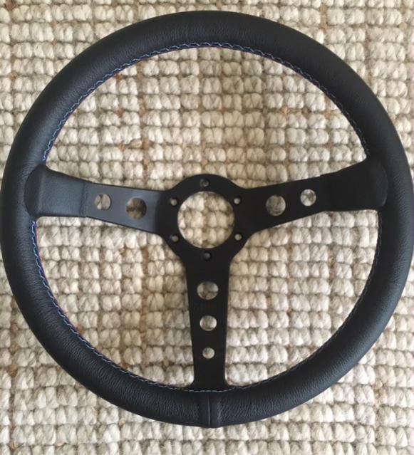 I love how the Alcantara makes the tri color thread really pop. Here on an e46 zhp wheel.