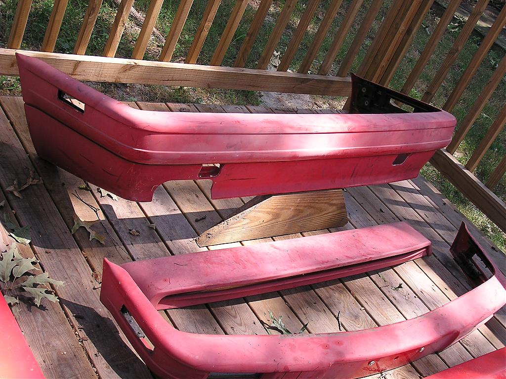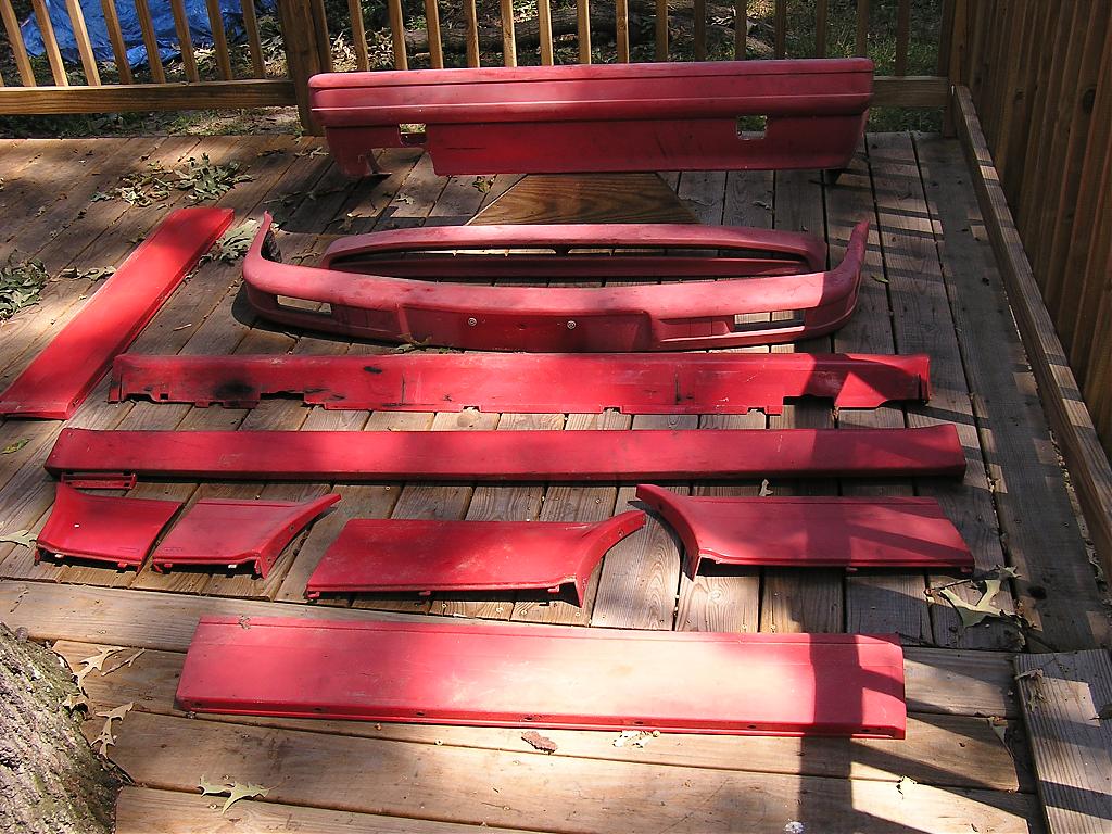 i have for sale a rare complete/full m-technic II body kit for a coupe,these are all original parts in red(paint is faded)-only flaw aside from the paint is the drivers door panel that had the upper tip torn off but,still fixable(can obtain this from ebay.de-an easy part to ship to the U.S),kit will come with a black good condition front valence with the fogs so,1987 and below e30 owners can be updated to a newer style valence to mount this kit-comes also with the bi level m-tech II rear wing and a silver original front m tech II chin spoiler-this part needs to be sanded but,has no cracks or tears(i'll include pics very shortly),bumper shocks also included along with miscellaneous covers,screw,clips associated with the install-will not part out this kit...price $1800 obo
