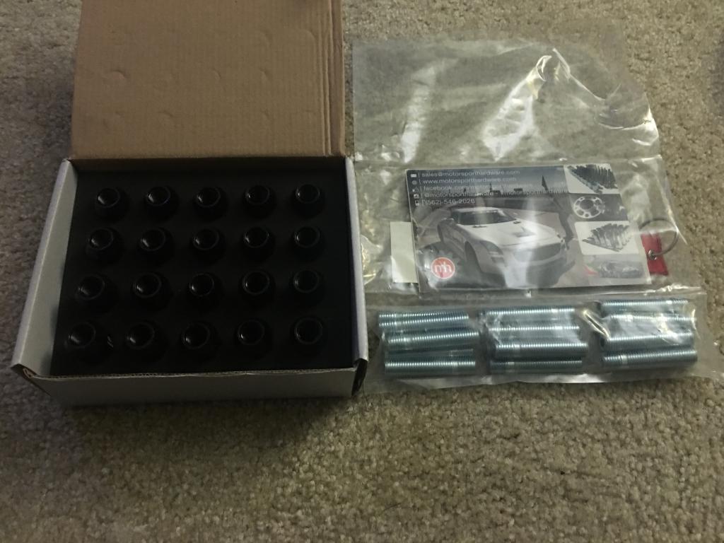 For sale is a brand new set of 20 12x1.5 Black Titan Race Nits and 20 57mm silver studs. Set has never been used on a vehicle, only opened to make sure there were no threading issues. $110 shipped for both in the US.
