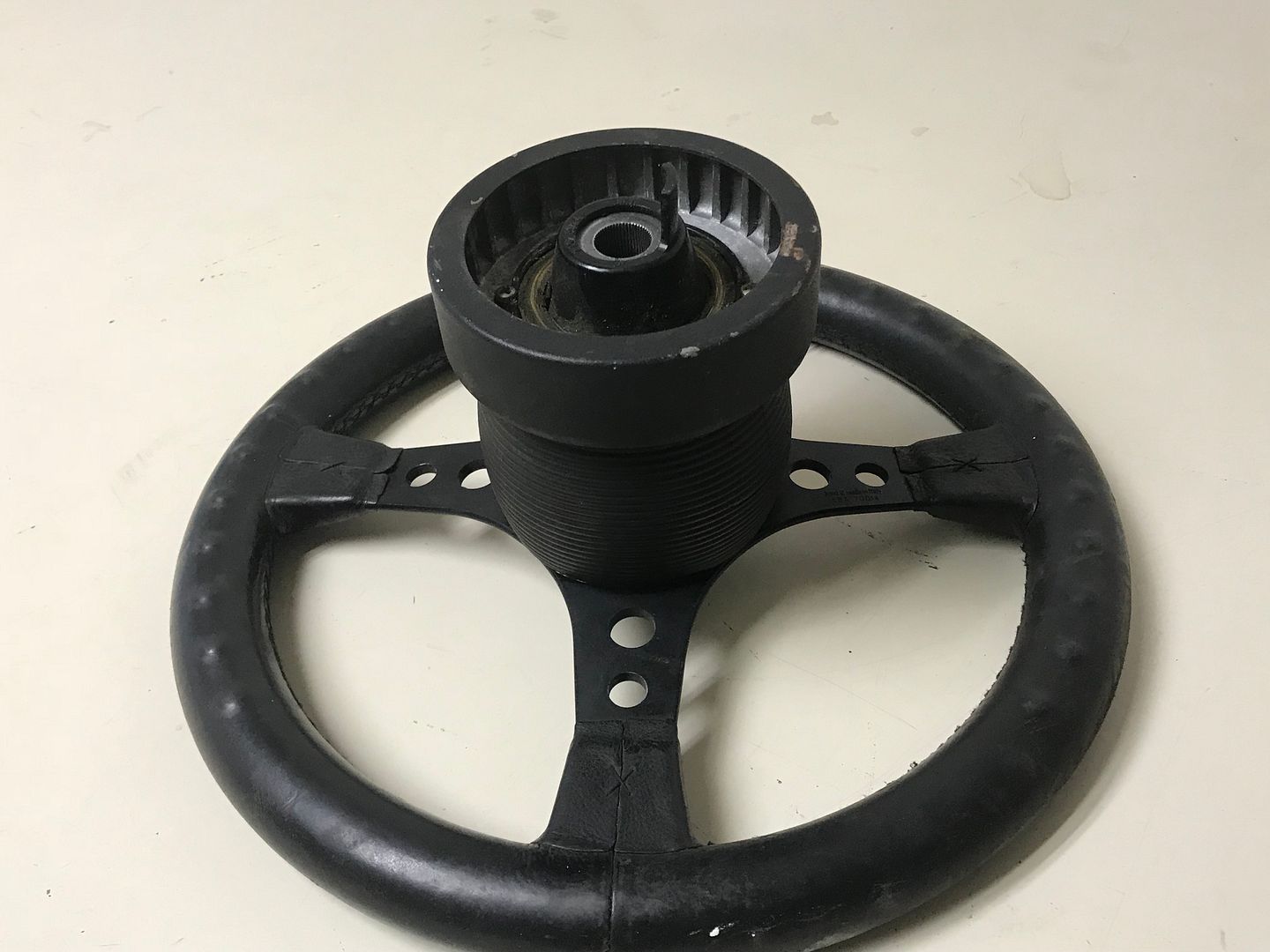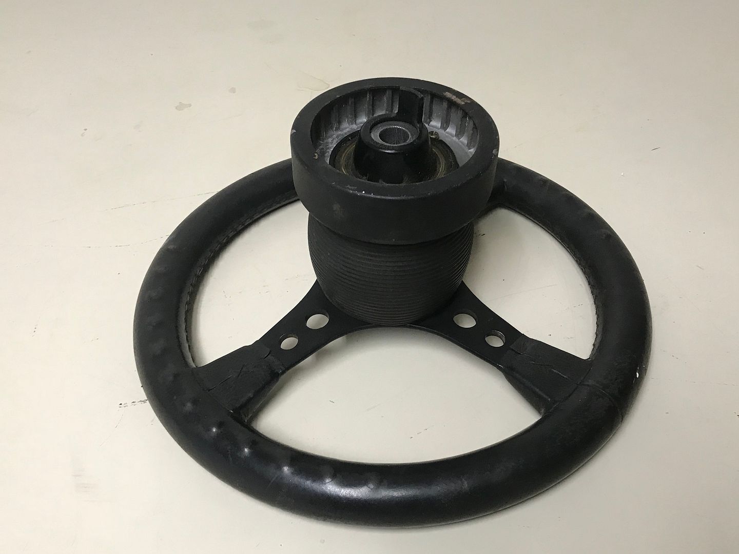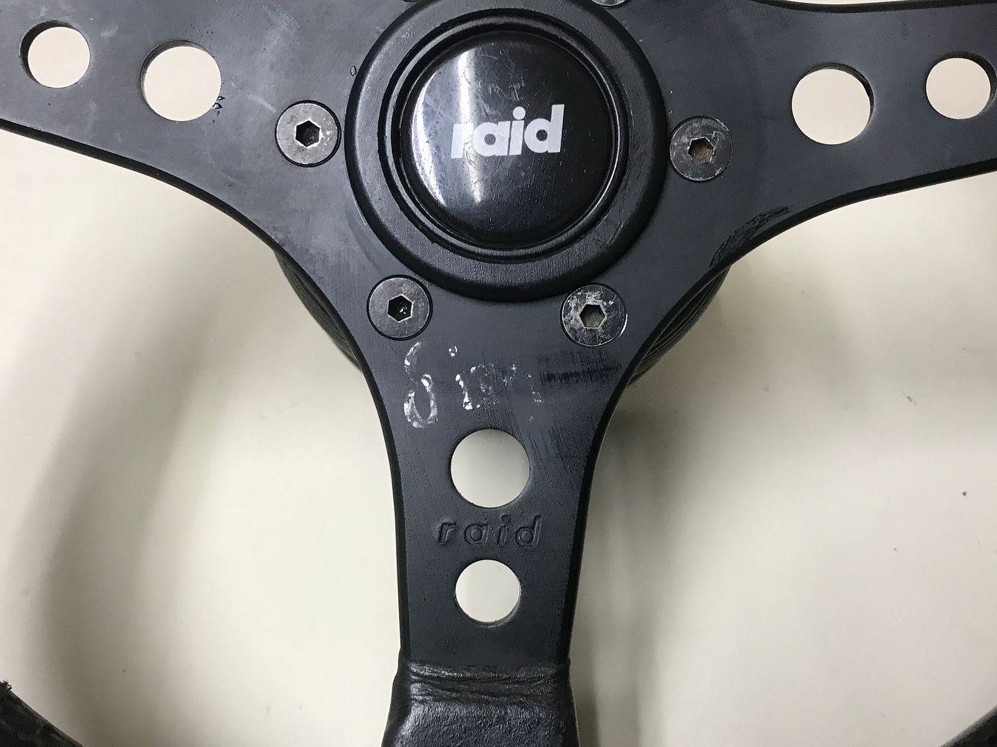The Raid steering wheel is also from an e30, the leather is warn and will need to be replaced at some point but has no tears. It comes with the hub adapter and the horn pad. Price is $100 + shipping.