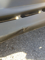 Pic 2 - Small crack on top of dash above gauge cluster. Barely noticeable. I took the smallest drill bit I had and drilled out both ends of the crack in order to stop it. I was going to put some 3M black sealant into the holes and crack but have not done that yet.