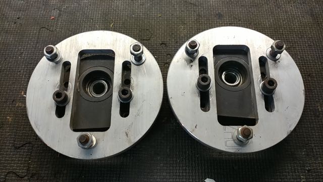 Pair of used Ireland Engineering "Spec E30" adjustable camber plates for use with factory diameter springs and factory upper spring perches.