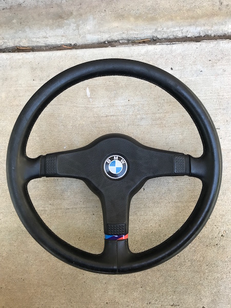 E30 M Tech I steering wheel in great shape with a new OEM M color clip. No cracks and the original leather is in great shape.